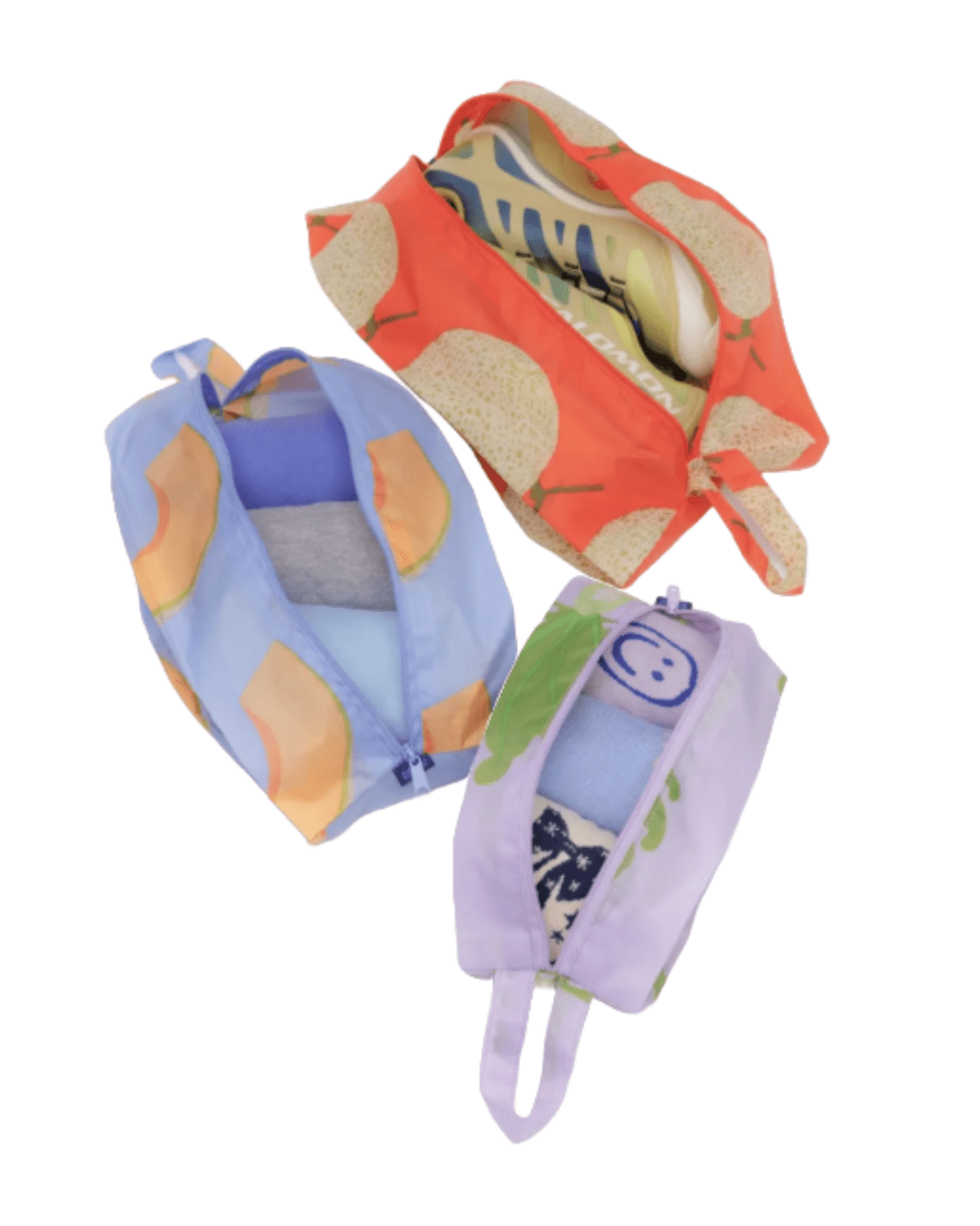 A set of three zippered pouches for travel and organization, with loops for carrying and hanging on the go. Perfect for packing, organizing your bag, or home tidying.
