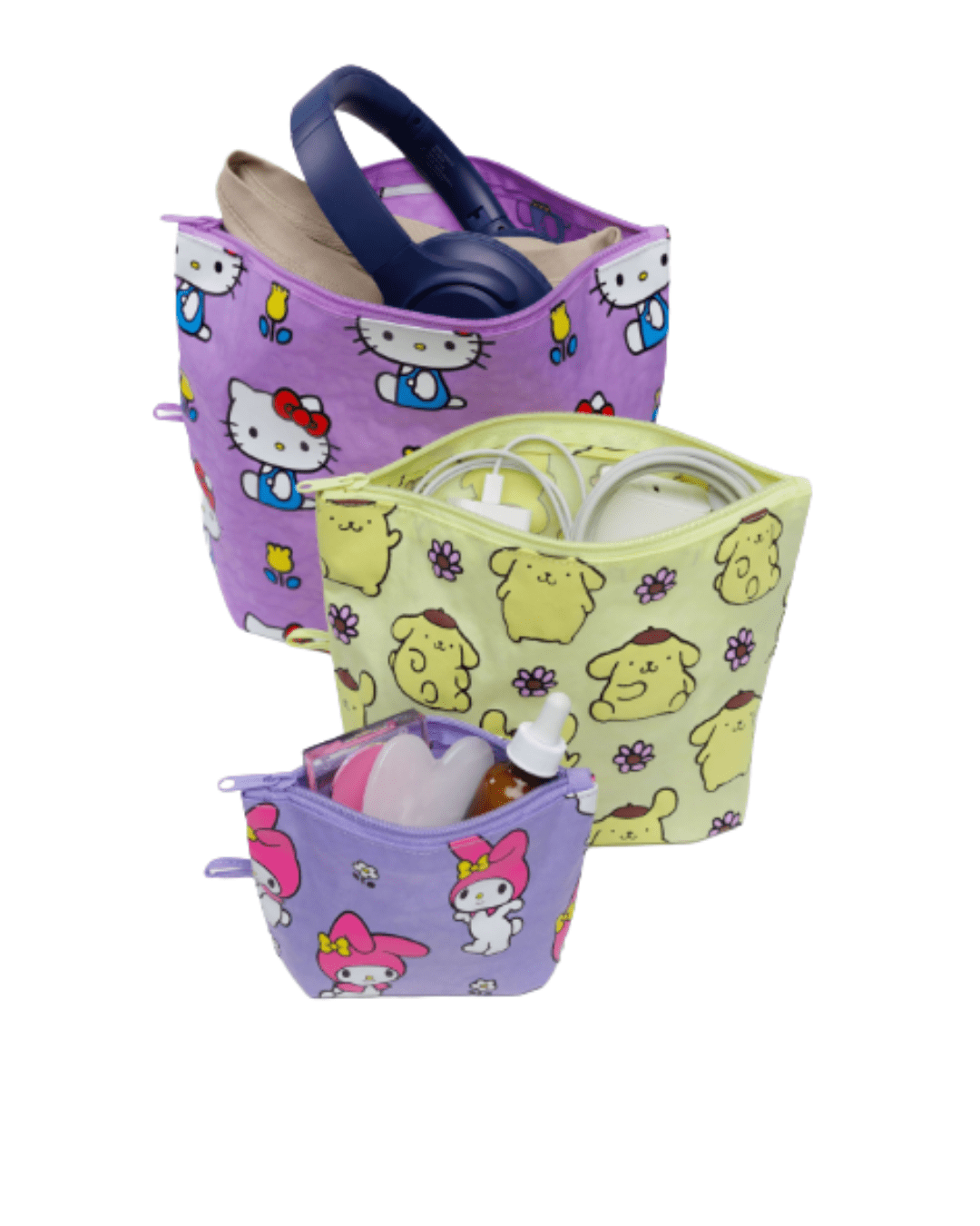 Baggu’s Go Pouch Set makes it easy to keep your bag neatly packed and organized. Whatever you’re toting—coins, cords, or an extra pair of shoes—this set of three all purpose pouches keeps it together. They expand to hold your essentials and lay flat when not in use.