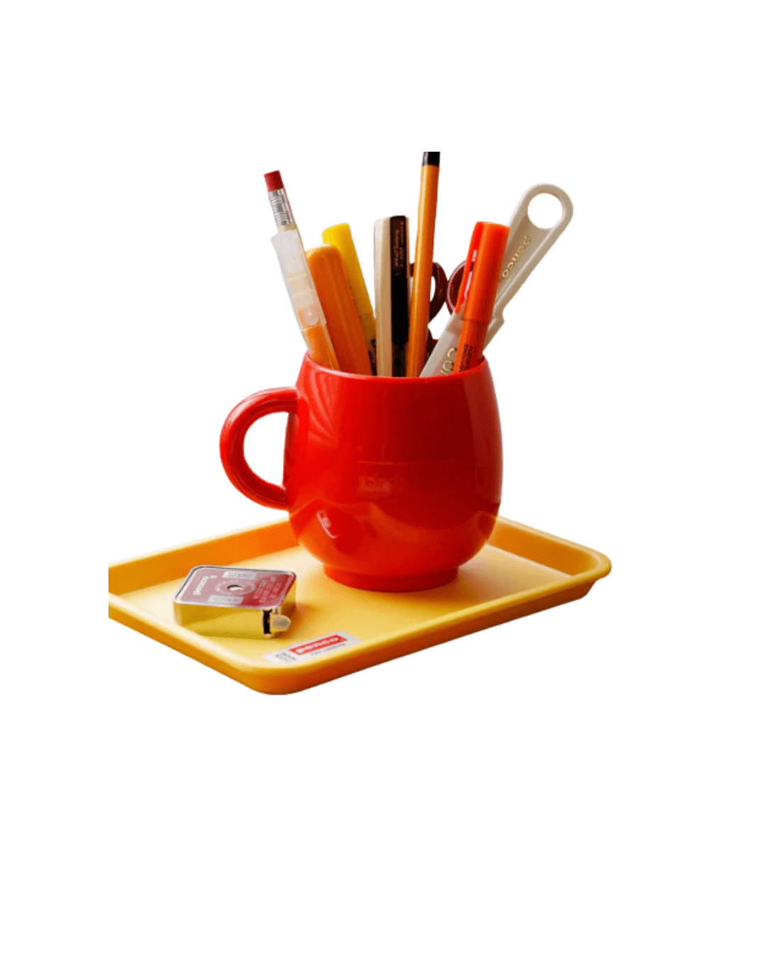 It features a rounded charming form, and despite being made of melamine, it has a substantial weight like a ceramic mug. Perfect for your morning cup of coffee or tea, or use as a pen holder! Packaged in an originally designed box.